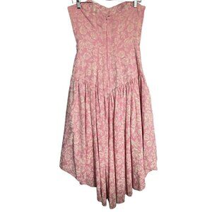 Handmade pink floral dress. Shorter front and Long in the back (asymmetrical). Perfect for summer, prom or wedding. See measurement photos for sizing.