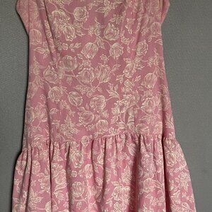 Vintage Handmade Pink and White Floral Ruffle Dress Size 10-12