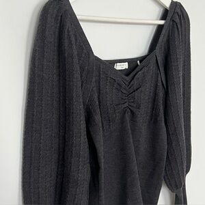 sandro paris top, sandro knit sweater, sweetheart neckline top, ruched bust knit, cropped wool sweater women, puff sleeve knit top, french designer sweater, fitted knit top, parisian chic, modern, feminine