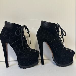 Alaïa Suede Embroidery 2X Platform Hiker Boots Black EU 38.5 Celeb Style
