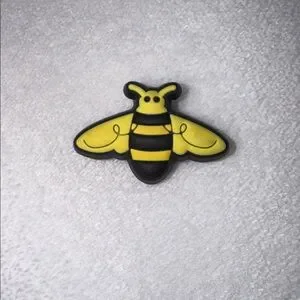 Adorable bee-shaped Jibbitz accessory in vibrant yellow and black.