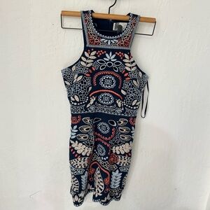 JOA Los Angeles Blue Coral Link Embroider Eyelet High Neck Dress XS