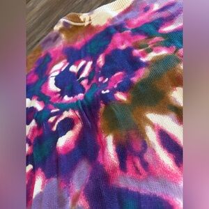 Natural Life Taylor Oversized Cotton Sweater Sunrise Tie-Dye Pink Purple Sz S/M