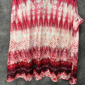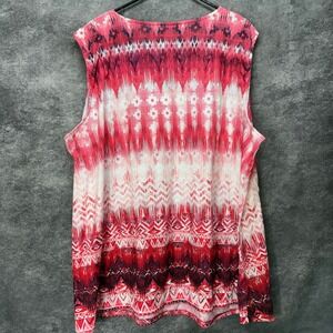 Catherines Ikat Geometric Print Sleevless Tank Top Plus Size 4X Red Pink Lace