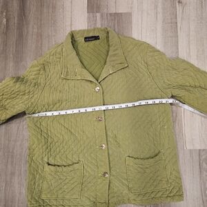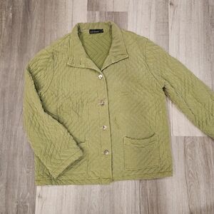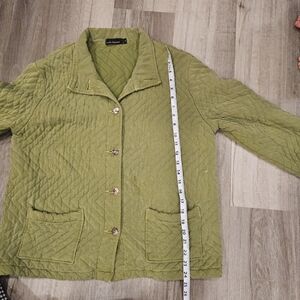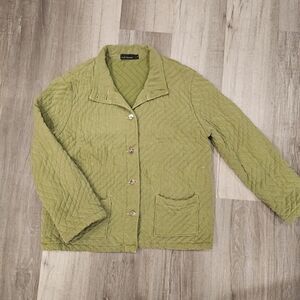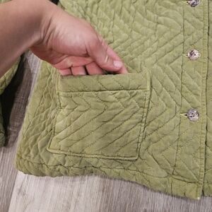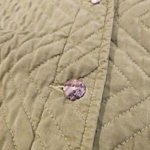 Chic quilted design. Button-up front. Two front pockets. Ideal for layering.