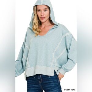 NEW SIZE L/XL Zenana Outfitters Light Blue Hoodie