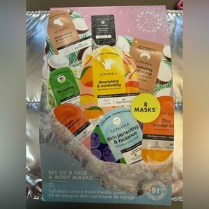 SEPHORA Favorites Moving Lights Collection Limited Edition Set of 8 Face & Body Masks in a Pouch. NWT