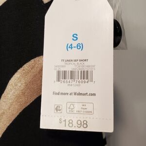Time And Tru Shorts S 4-6 Black and Tan Linen And Rayon New