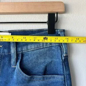 • Details: High-rise waist, tapered leg, zip fly with button closure, light-to-medium blue wash, subtle fading for a lived-in look