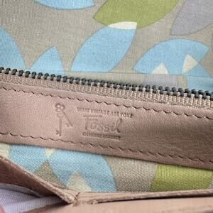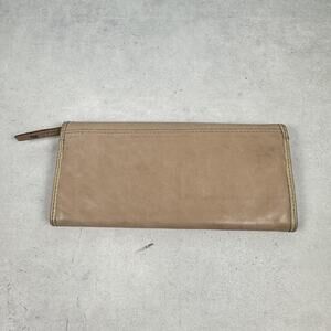 Fossil Wallet Womens Tan Genuine Leather Clutch Organizer Leaf Lining Print