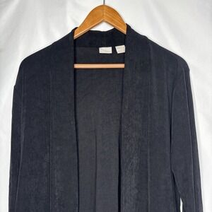 Chicos Travelers Women's 2 (12) Black Open Cardigan Jacket Sheer Bottom