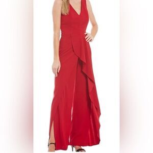 Marina Ruffled Sleeveless Jumpsuit in Red size 6