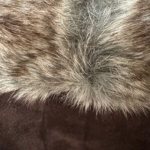 Chic dark brown vest with plush faux fur trim. Perfect for layering. Adds elegance to any look. Suede feel outside. 2 side pockets. Snap closure.