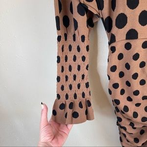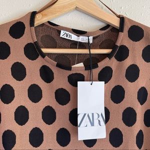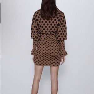 Zara Puff Sleeve Ruched Draped Polka Dots Mini Dress Size Large NWT