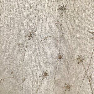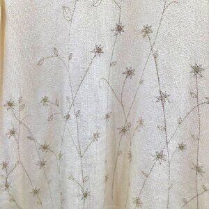 Vintage 1X Winter Flowers Sweater Embroidered Iridescent Sequin Ivory Gold L/S