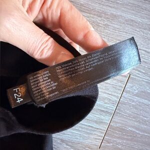 Made in USA of imported materials. 70% Viscose/24% Nylon/6% Spandex.