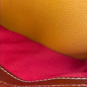 EUC mustard yellow coated canvas with brown smooth leather trim Dooney & Bourke ‘Lucy’ hobo. This hobo bag shows minor signs of use. All flaws are pictured & written in this description. The leather shoulder strap is in excellent condition. It is not adjustable or detachable. On the back corner there is a small wrinkle. It is pictured. Lastly, along the bottom edges there is minor discoloration. No other exterior flaws. Odor free. The front pockets are in excellent condition. No flaws or odors on the lining. The interior is in excellent condition. No flaws or odors inside. 10.5”L x 8.25”H. 10” shoulder drop.