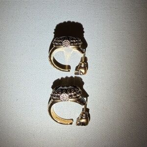 Edgy and stylish gold skull hoop earrings perfect for adding a bold statement to any outfit.