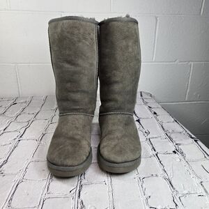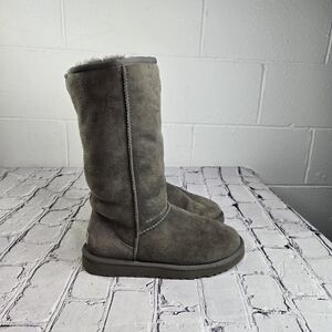 Ugg 5185 gray tall classic shearling boots style 5815 size 7 heel 1 height 12 around top 15