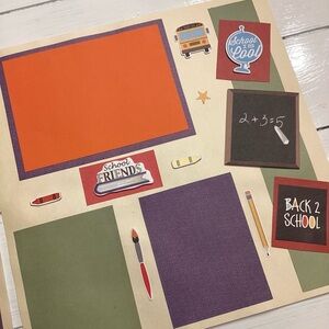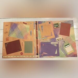 Vibrant scrapbook paper set with school-themed designs. Includes various colors and patterns. This includes 4 - 12x12 pages that include a school theme and ready to add photos to them. Comes from smoke free home.