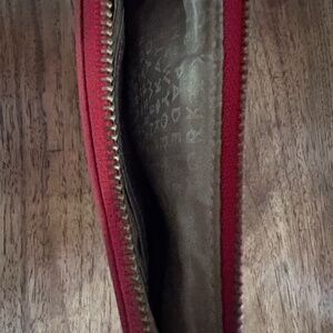 This elegant clutch showcases a striking red and white chevron pattern, making it a standout accessory for any occasion. Crafted with a structured design, it includes a convenient wrist strap for easy carrying. Perfect for keeping your essentials close at hand, this piece combines style and functionality effortlessly.