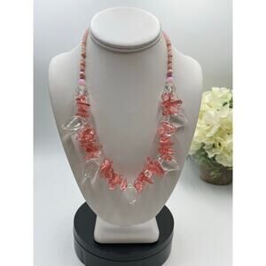 Cherry Quartz & Clear Quartz Chip Bead Statement Necklace Pink Coral Gemstone