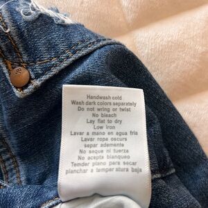 Trendy capri jeans with distressed details. Comfortable and a soft denim. Size 16w. See photos for measurements and fabric content.