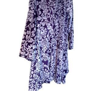 ANGIE Purple & Gray Boho Pleated Floral Retro Style Velour Peacoat Size M