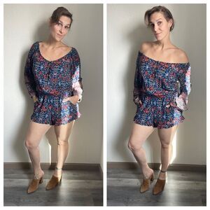 American Eagle Long Sleeve Shorts Romper Medium Floral Feminine Party