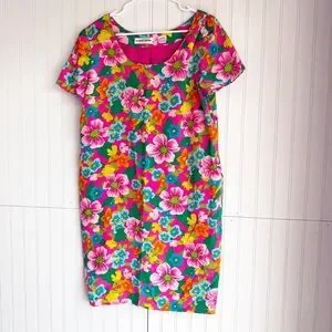 Albert Nipon Size 12 100% Silk Vibrant Floral Shift Dress Vintage