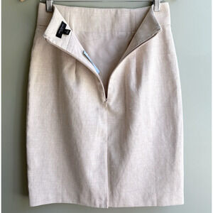 Ann Taylor Linen Blend Pencil Skirt Beige Khaki Lined Work Office Career 2P
