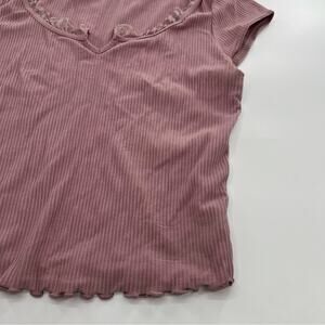 Intimately Free People Lace Trim Rib Crop Top Pink Women’s Shirt Classic Twist