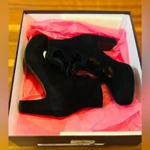 SOLD-NWT Chie Mihara Black Suede Lace-Up Cutout Heeled Booties – EU 36.5
