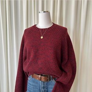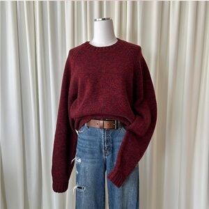 Vintage Lands’ End 100% wool crewneck sweater Burgundy red oversized