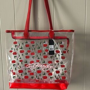 Ed Hardy Red and Clear Cherry Tote