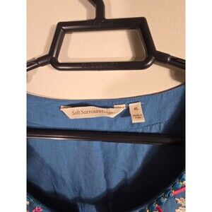 Soft Surroundings Dress XL Blue Mirapani Prairie Tiered Boho Embroidered Maxi