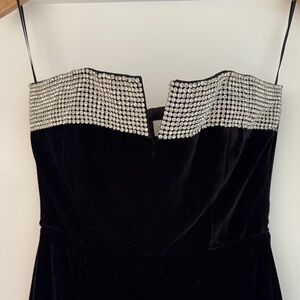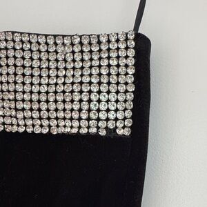 Worn once to a diamond themed gala, I got so many compliments! It is missing a diamond from the top on the front side as pictured, I’m sure it wouldn’t be difficult to replace it.