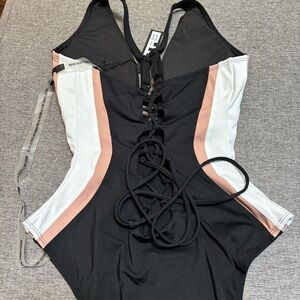 Signature waist-snatching lacing with open back.