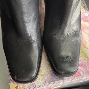 Elevate your look with these sleek black leather heeled boots. Perfect for any occasion.
