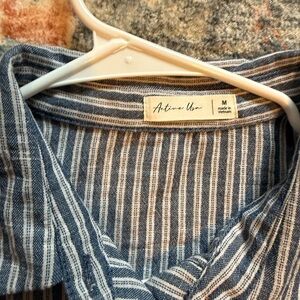 Stylish striped set featuring a button-up top and matching pants. Perfect for casual wear.