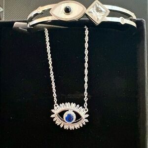 Cote d’ Argent sterling silver 8” chain with cubic zirconia and brilliant blue gem evil eye necklace.