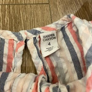 Adorable Harper Canyon dress with pink, blue, and white stripes. Adorable ruffle sleeves, gauzy material, and keyhole button closure on back. Girls size 4, like new condition, smoke and pet free home.