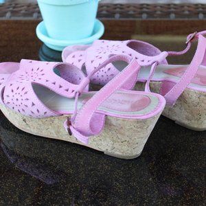 Gorgeous Powder Pink Cork Heel Wedges Laser Cut Size 7M