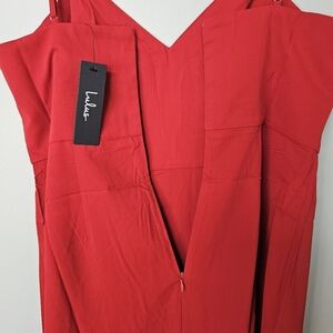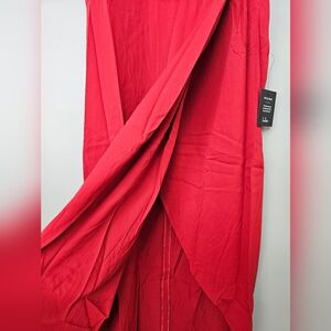 Lulus Women's Reinette Rust Red Faux Wrap Pleated Overlap Sleveless Midi Dress