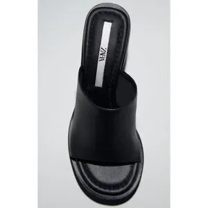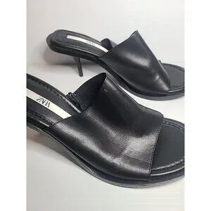 Zara Women's Black Leater Peep Toe Slip On Heel Sandals SZ 41/ US 10
