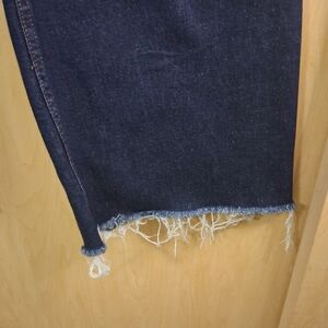 Zara size 6 Chic dark blue jeans with a wide-leg design. Features stylish frayed hems. Ideal for versatile wear. Inseam 28" Waist 13 1/". Smoke-free and pet free home.