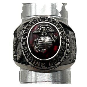 Balfour USMC Ring Red Stone BAL CEL Marines Sz 10 Iwo Jima Tun Tavern Silvertone