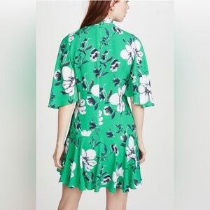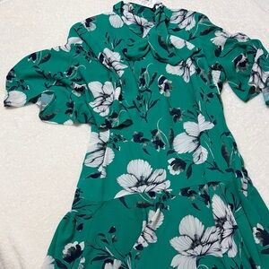 NEW! Black Halo Dress. Size 10. Chic green midi dress with bold floral print. Features flowing sleeves and a flared skirt. Ideal for stylish outings.