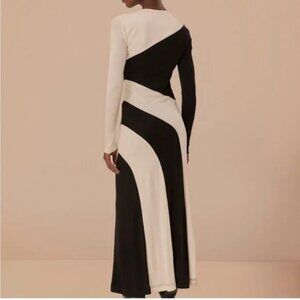 FARM Rio Elegant Black And White Cut-Out Detail Long Sleeve Midi Maxi Dress M