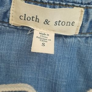 Cloth & Stone Womens Top S Chambray Lace Up Cottagecore Peasant Boho Soft Denim